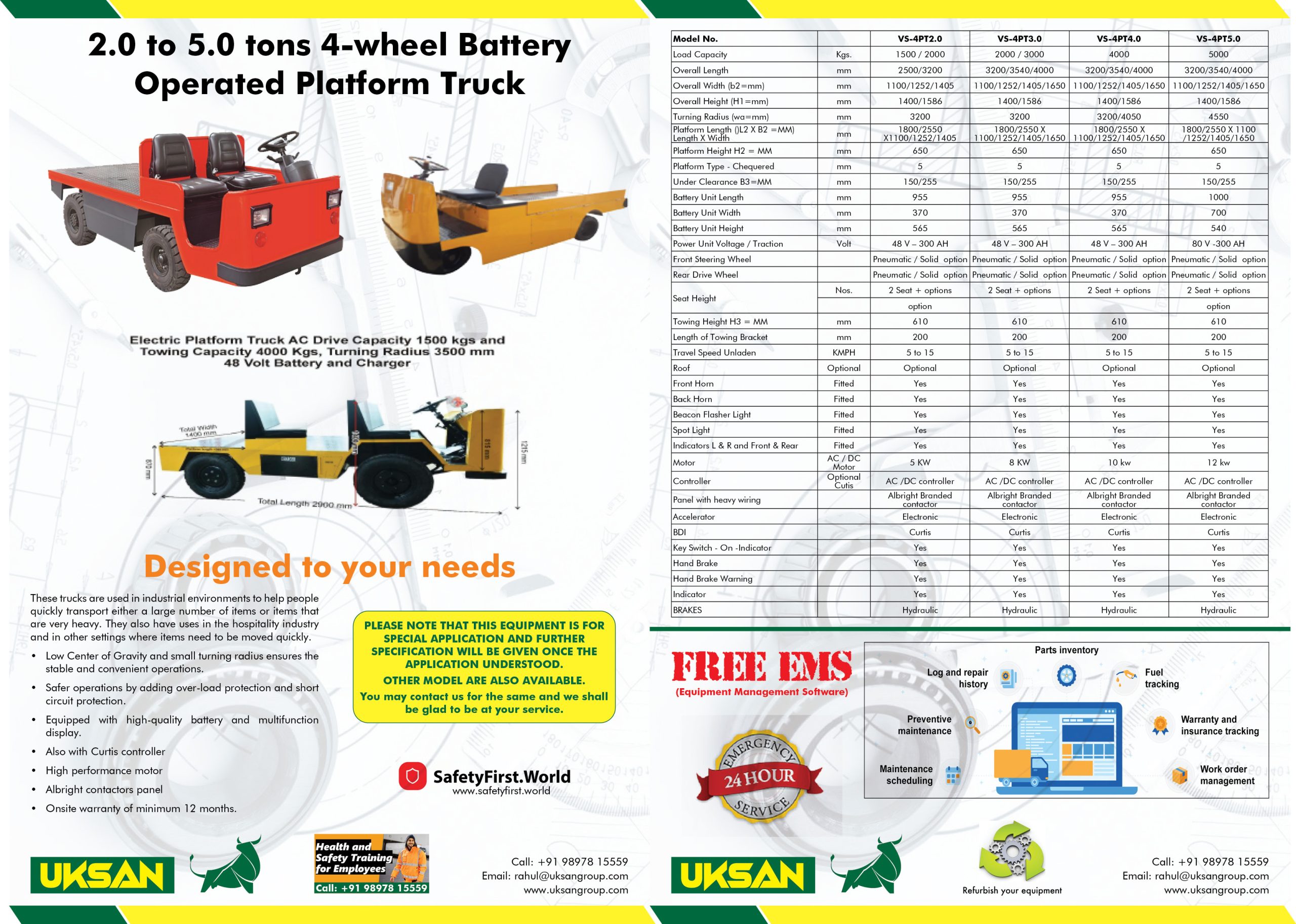 2.0 to 5.0 tons 4-wheel Battery Operated Platform Truck