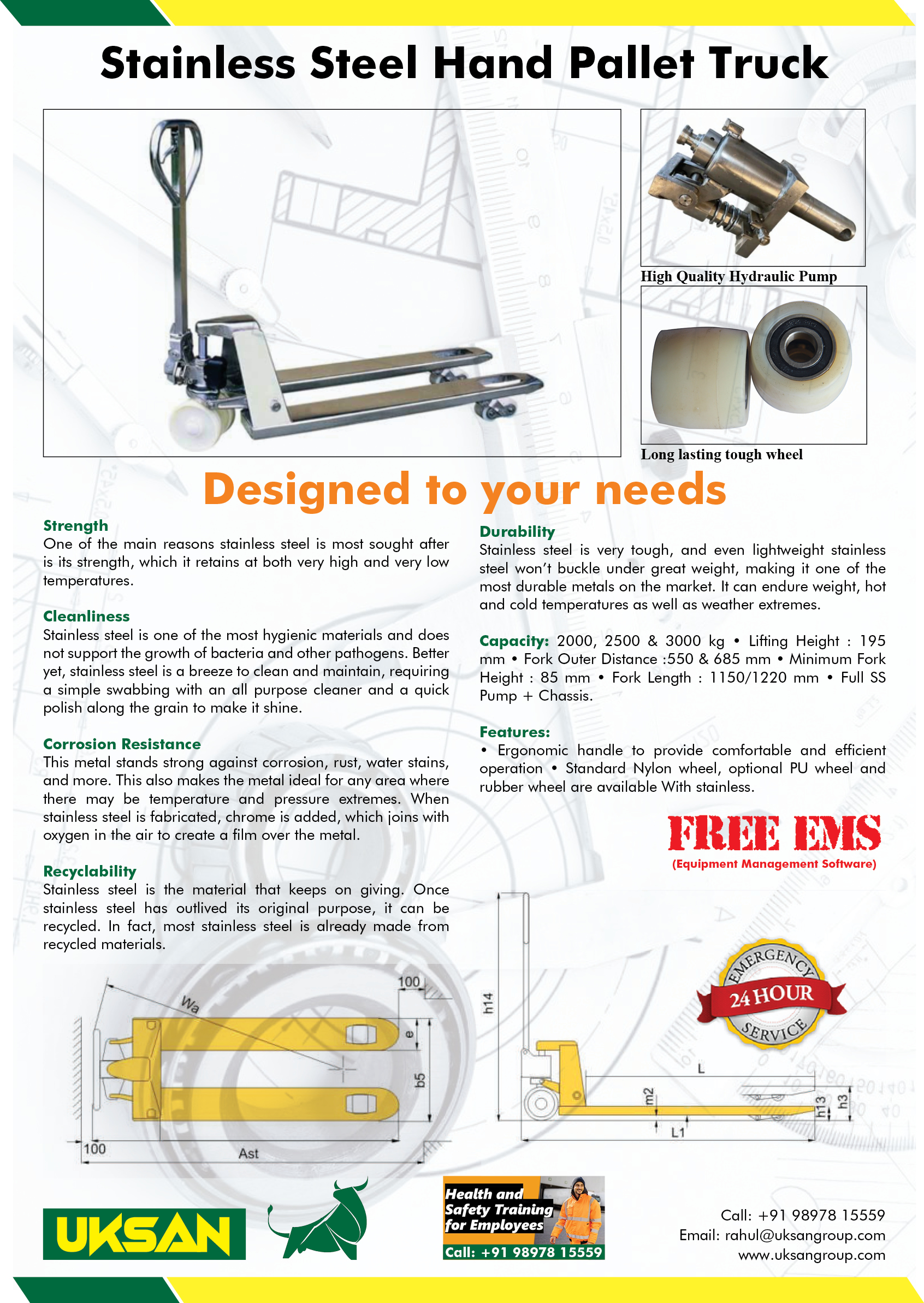 2.5 tons Stainless steel Hand Operated Pallet Truck