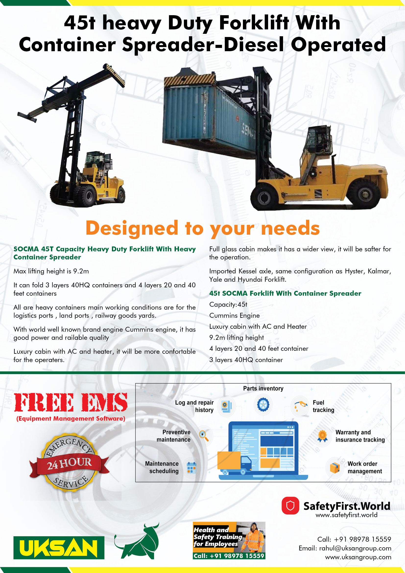 45t heavy Duty Forklift With Container Spreader-Diesel Operated