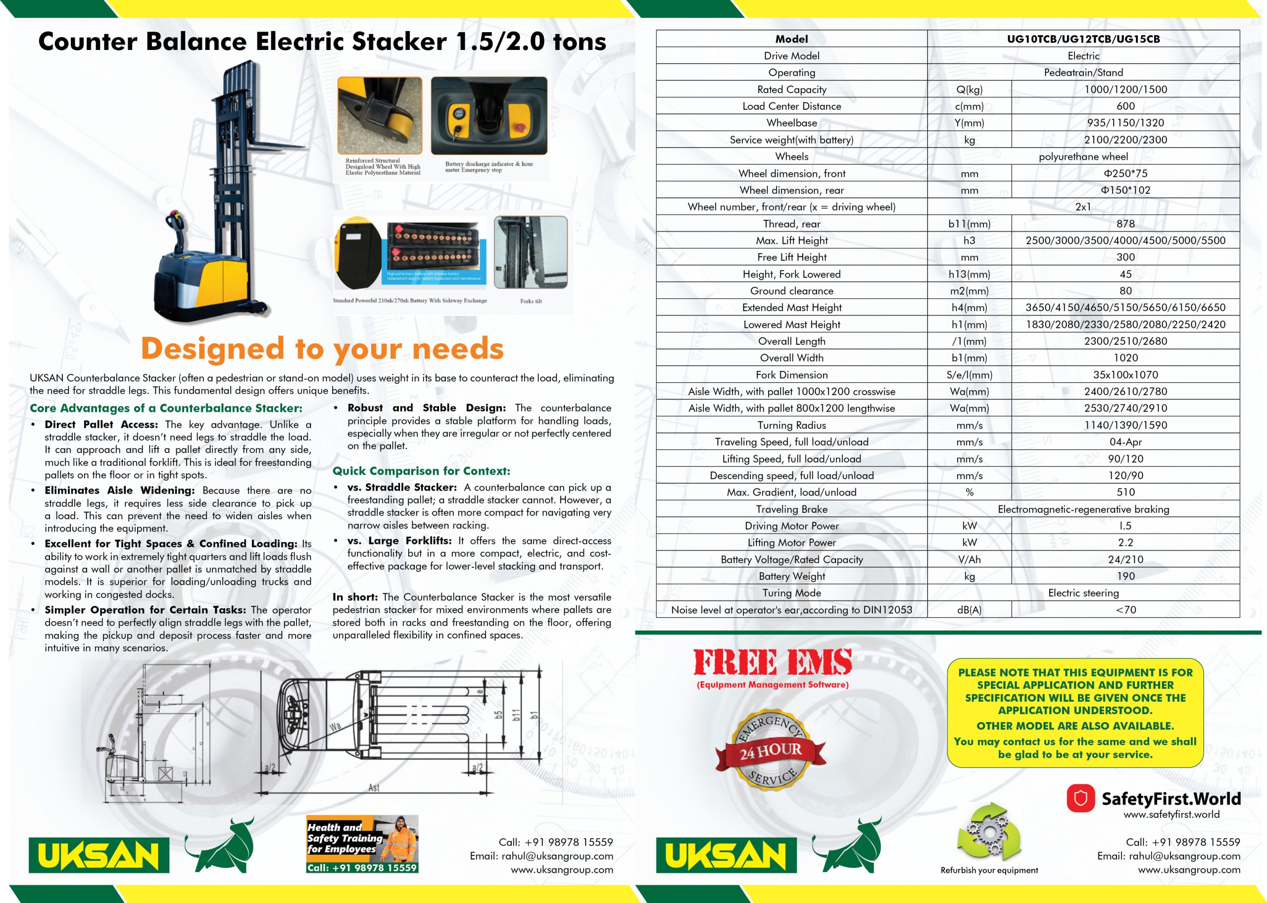 Counter balance stacker 1.25-1.50- 2.00 tons Lithium-Lead Battery