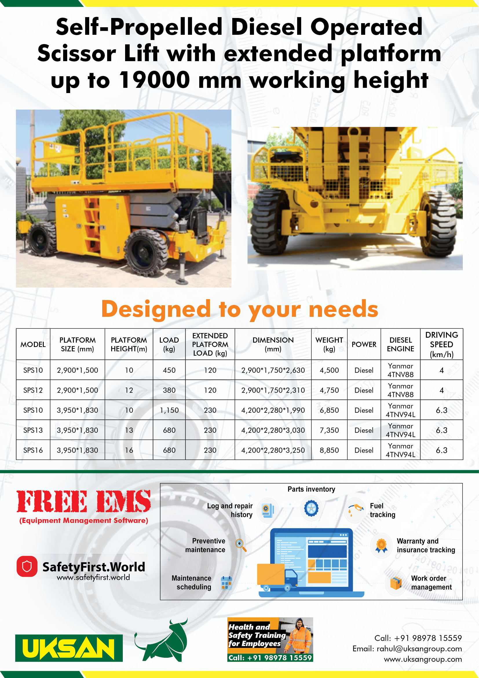 Self Propelled Battery Operated Scissor Lift with extended platform up to 19000 mm working height